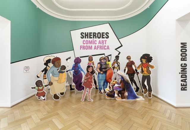 Ausstellungsansicht „SHEROES. Comic Art from Africa“ im Weltkulturen Museum © Foto: Wolfgang Günzel