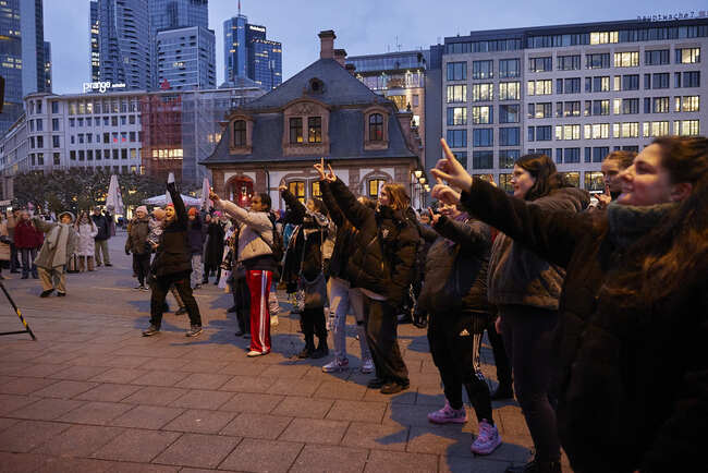 Am V-Day demonstrieren Menschen weltweit mit einer Tanzdemo gegen Gewalt an Frauen und Mädchen. Von Argentinien bis Zimbabwe lautet das Motto: Erhebt euch, befreit euch, tanzt! Auch Frankfurt ist wieder mit dabei.