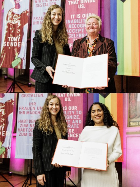 Bei einem Festakt am Freitagabend, 28. November, im Kaisersaal des Frankfurter Römers hat Frauendezernentin Tina Zapf-Rodríguez die Perkussionistin und queerfeministische Musik-Aktivistin Anne Breick und die Künstlerin und künstlerische Leiterin des Internationalen Frauen*Theaterfestivals Bárbara Luci Carvalho mit dem 16. Tony Sender-Preis ausgezeichnet. In ihrer Rede würdigte Frauendezernentin Zapf-Rodríguez die Preisträgerinnen als Initiatorinnen und Streiterinnen im Kampf für Geschlechtergerechtigkeit und gegen Diskriminierung und Menschenfeindlichkeit. Im Anschluss an die Verleihung haben sich die Preisträgerinnen in das Goldene Buch der Stadt Frankfurt eingetragen.